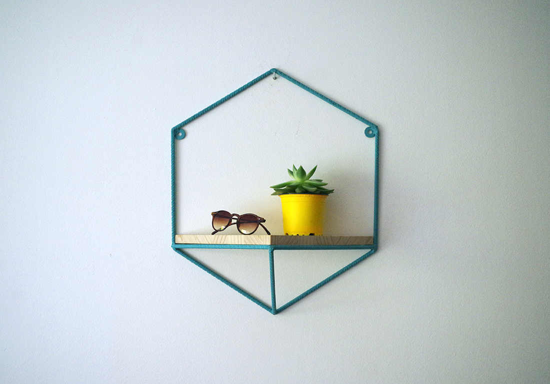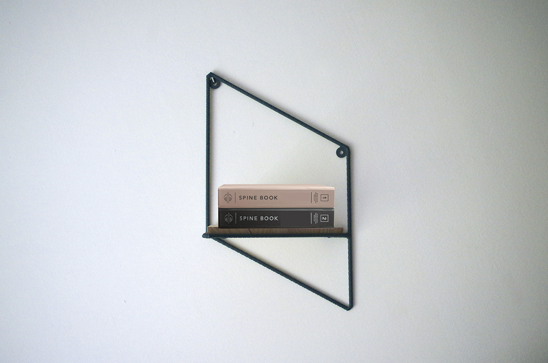 I designed and produced shelves made out of steel rebars and a wooden base.
